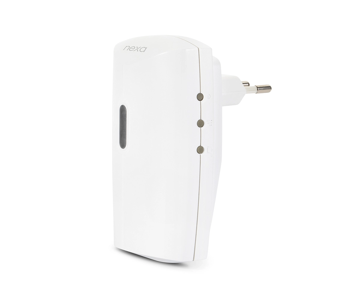 Placeras i ett vanligt vägguttag. Dörrklockan har 6 valbara signaler så att olika sändare kan ge olika ringsignaler. Ljudnivån kan ställas i 4 olika nivåer; Hög – Mellan – Låg – Mute. Den blå LED-lampan lyser när det ringer i dörrklockan.